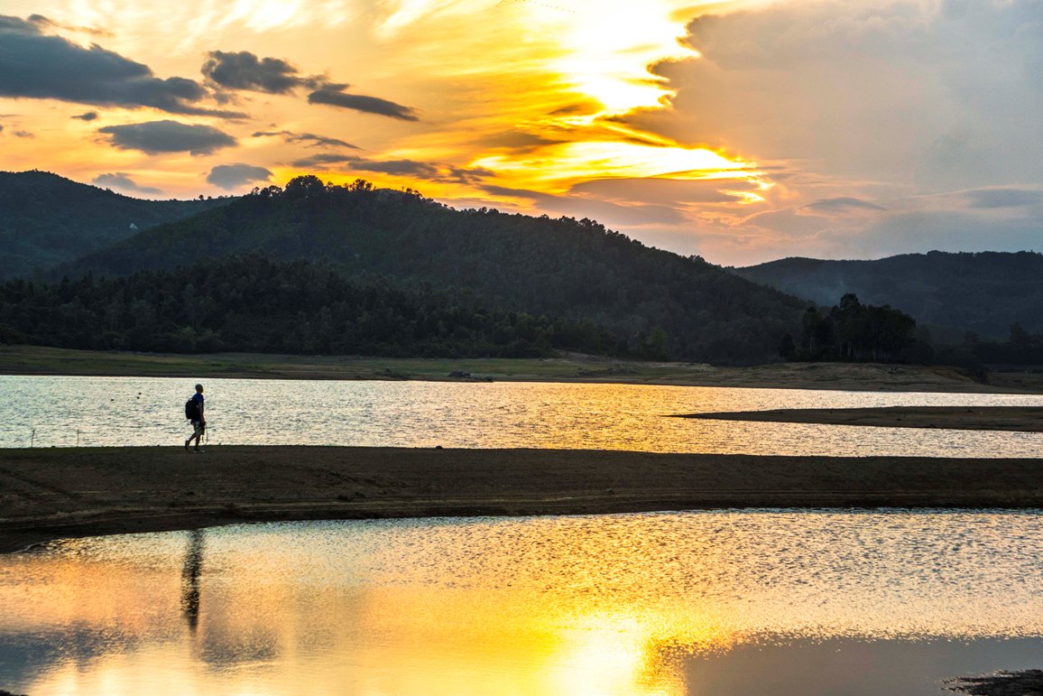 Hồ chứa Thạch Bàn nằm ở phía tây khu di tích Mỹ Sơn do người Pháp xây dựng cách nay cũng đã non một thế kỷ. Tất nhiên là từ sau bao cuộc chiến tranh tàn phá đổ nát, hồ Thạch Bàn cũng như bao công trình thủy lợi xưa cũ khác đã được nâng cấp mở rộng. Hồ chứa Thạch Bàn ở vào vị trí liền kề nằm sát bên con đường. Từ vài năm nay con đường này, quãng nối từ Mỹ Sơn vượt qua đèo Phường Rạnh dẫn tới Nông Sơn đã được mở rộng, xây dựng lại, bê tông trải phẳng phiu lượn lờ êm ái theo bờ Nam con sông Thu Bồn. Dặm biếc mà tôi vừa khám phá ra nơi đây không đơn thuần là hình ảnh vuông vắn phản chiếu trong hồ chứa Thạch Bàn, hay vẻ bí ẩn trầm mặc của đền tháp Mỹ Sơn phía dưới, mà còn là một mảng màu vô tận trải dài khắp núi đồi phía tây, ôm trọn hữu ngạn dòng Thu Bồn.